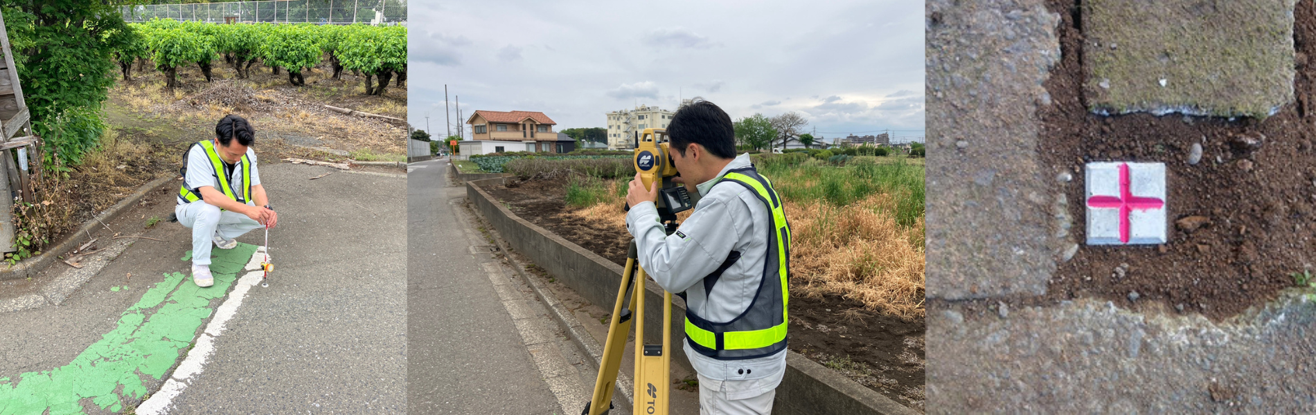 道路との境界、隣接している土地との境界を確定させる為の測量です。